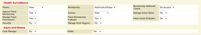 Review the security settings for users needing access to Health Surveillance (and Case Management). Review settings and give permissions, enable, or set, as appropriate. These settings can be found under the Health Surveillance section of the Access Control user settings. Additional information can be found within the Security Role Settings online help documentation, if needed.