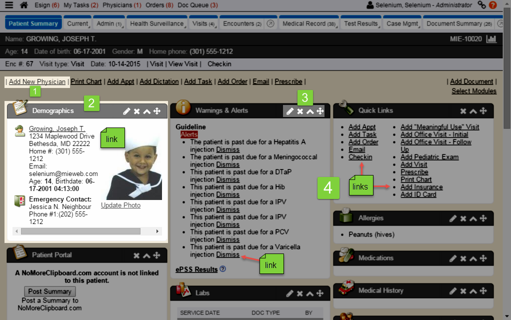 The following items can be seen throughout MIE systems. Here, a patient chart is used for identification.
